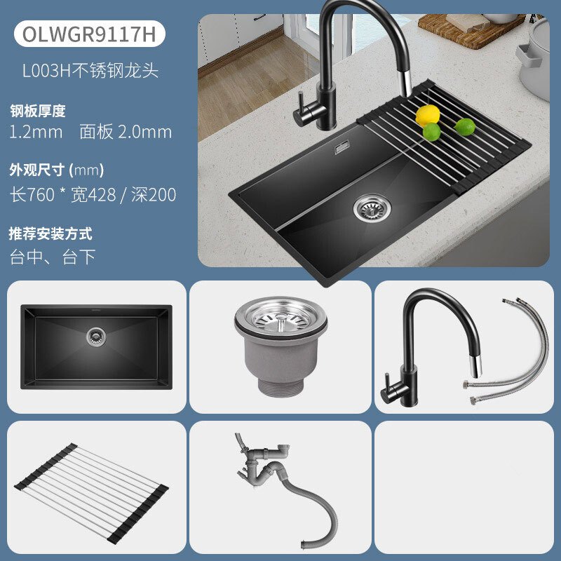 欧琳水槽单槽9136套餐304不锈钢家用厨房水槽加厚洗菜盆小水槽洗碗槽