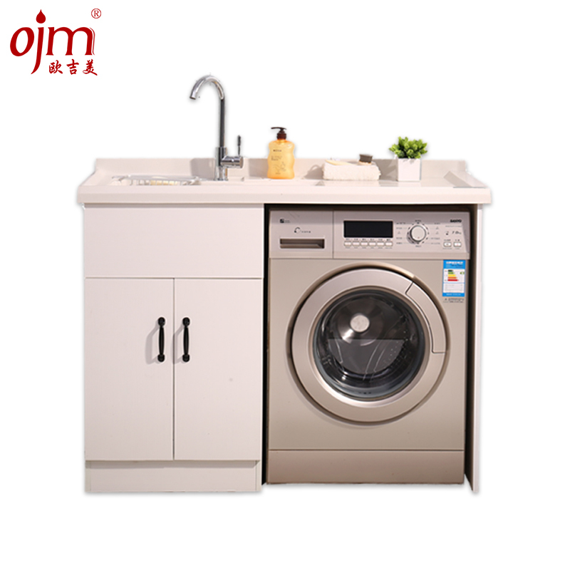 欧吉美 橡木洗衣柜石英石台盆浴室柜组合带搓衣板实木阳台滚筒洗衣机柜