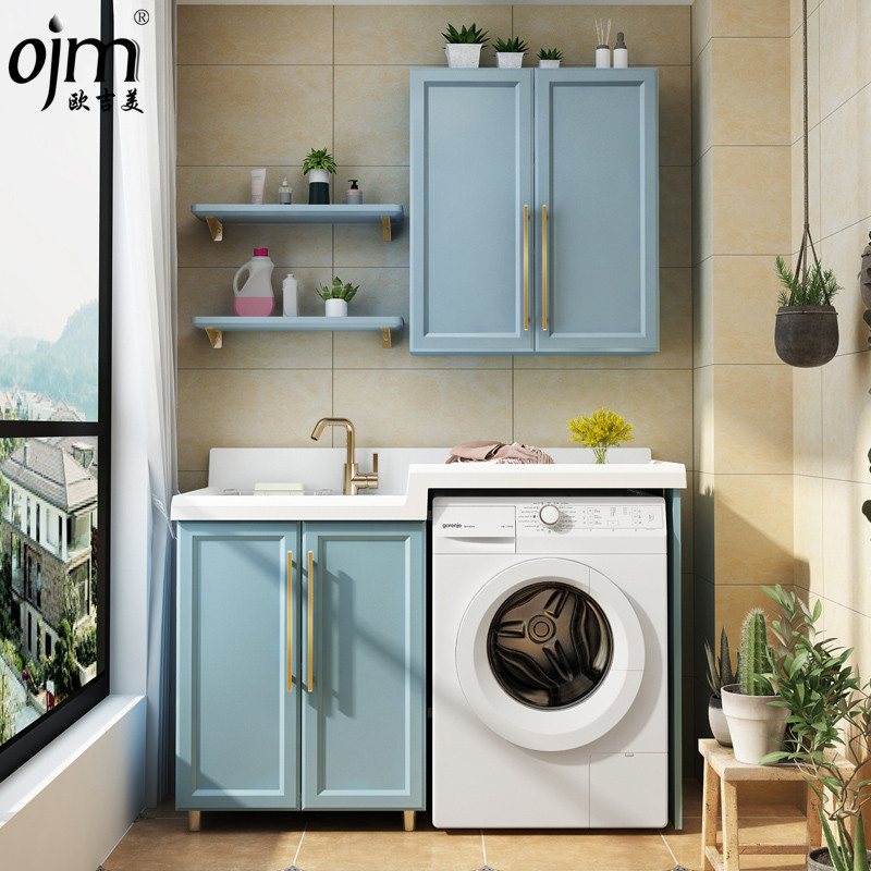 欧吉美 橡木洗衣柜高低盆带搓衣板实木阳台柜滚筒洗衣机柜伴侣浴室柜组合