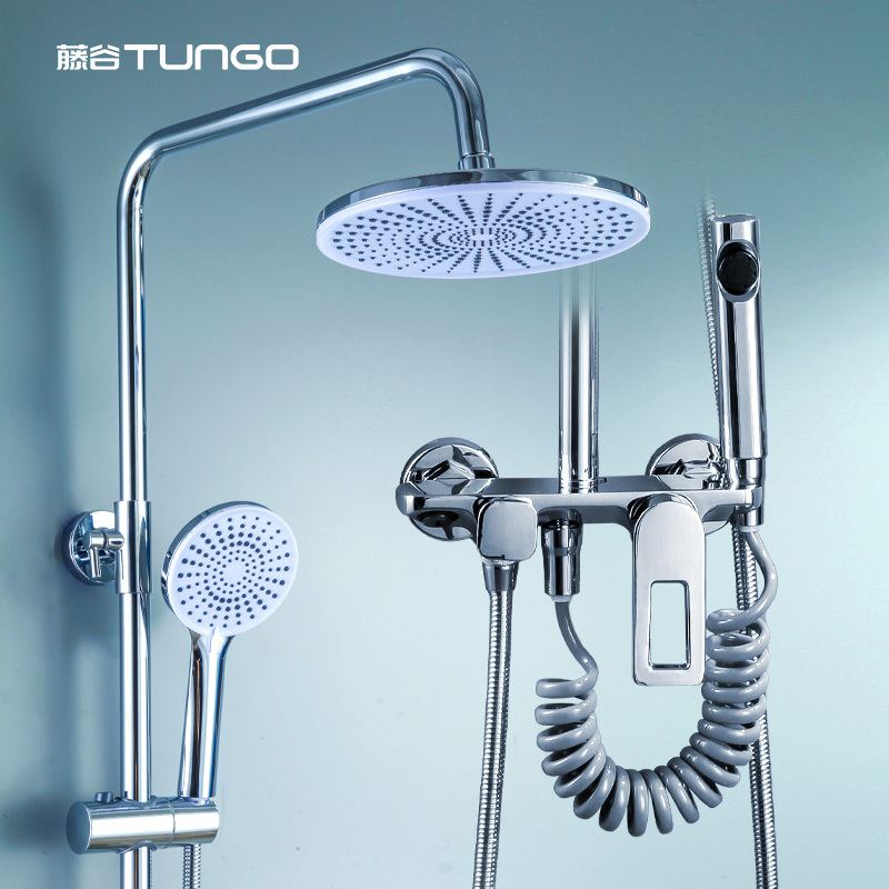 藤谷/ TUNGO 枪灰色浴室淋浴花洒套装精铜主体增压喷头卫生间莲蓬头淋雨器套装手持花晒